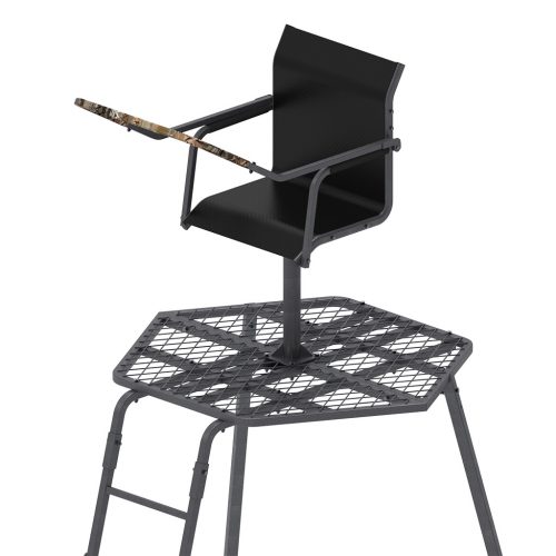 This Steel Four-Leg Hunting Blind Top is engineered for hunters seeking ultimate comfort and panoramic visibility. Constructed with a steel frame and waterproof tarp, it offers both durability and portability. With an 80-inch height from platform to roof center, the interior provides ample standing room. The expansive 57.5″ deep x 57.5″ wide platform easily accommodates two hunters and their gear. Windows open on 7 sides, delivering near-panoramic views to cover any direction. The waterproof tarp provides reliable protection from the elements.